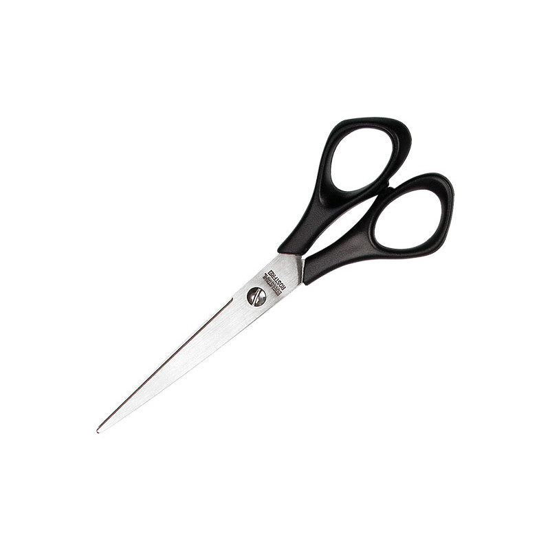 Tijeras con borde afilado y ligero. Longitud: 25 cm, con cuchillas de acero inoxidable y asas de plástico negro. Adecuado para diestros. Los agujeros del asa son de forma ergonómica.